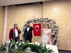 Çiftin nikahını Trabzon Büyükşehir Belediye Başkanı Ahmet Metin GENÇ kıydı. Kaşüstü Eğitim ve Araştırma hastanesi eski Başhekimi Prof.Dr. Süleyman TÜREDİ’de nikah şahidi olarak genç çiftin mutluluğuna ortak oldu ve mutluluk dileklerini iletti. Büyükşehir Belediye Başkanı Ahmet Metin GENÇ, Aleyna ve Sarperhan’ a ömür boyu mutluluklar dileyerek Kuran’ı Kerim ile Türk Bayrağı hediye etti. Genç çift de Başkan GENÇ’e yuvalarında huzurlu bir hayat süreceklerine dair söz verdiler.